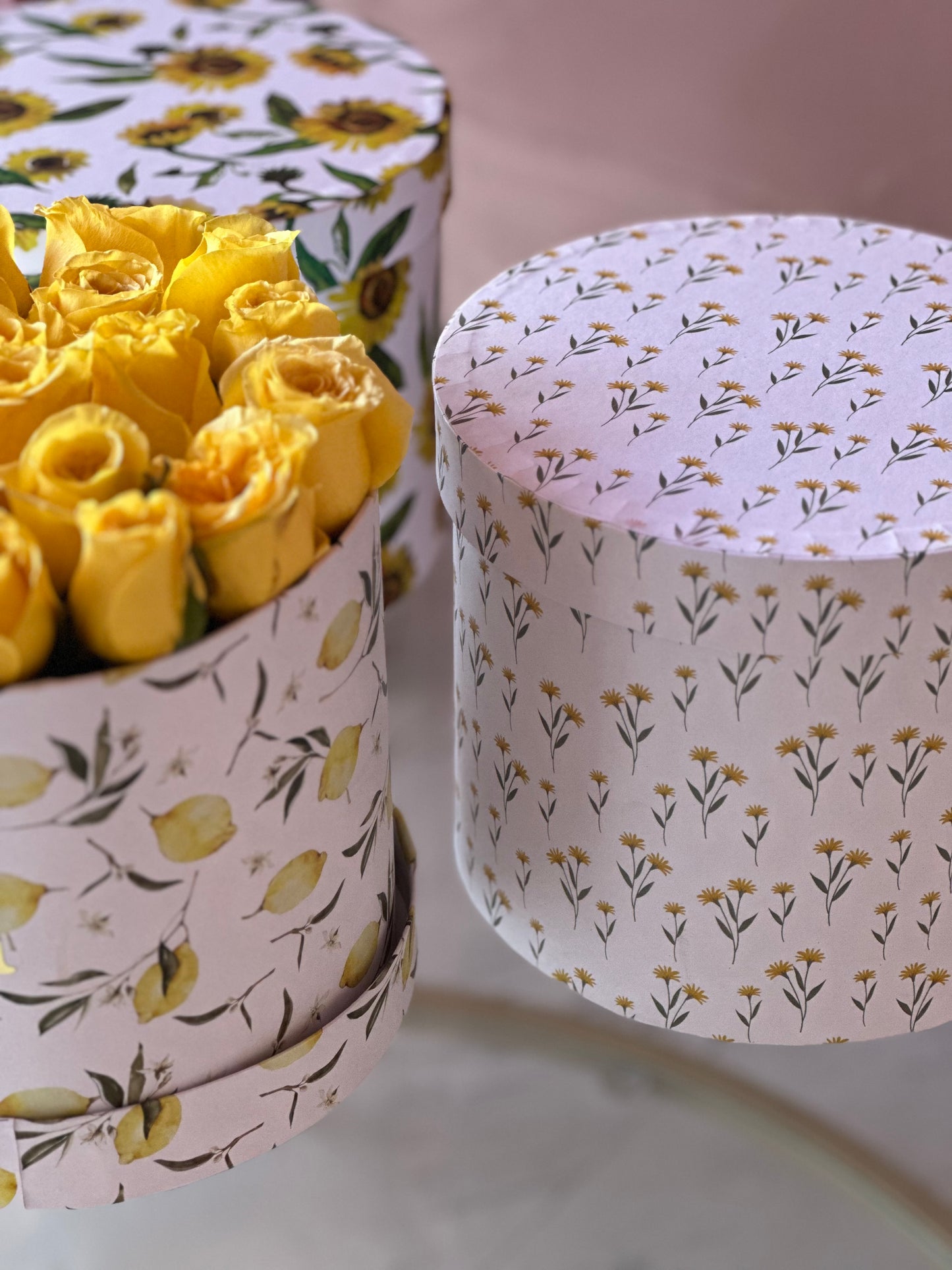 caja con diseño, de 20cm de diametro x 17cm de altura.